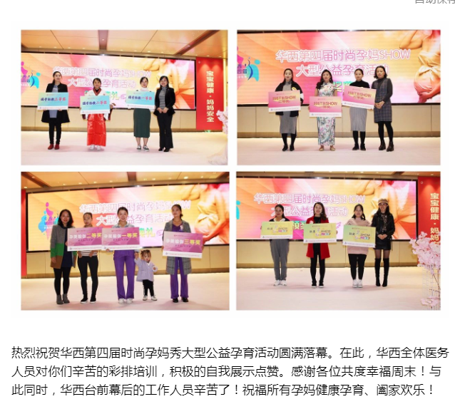 热烈祝贺华西第四届时尚孕妈SHOW大型公益活动完