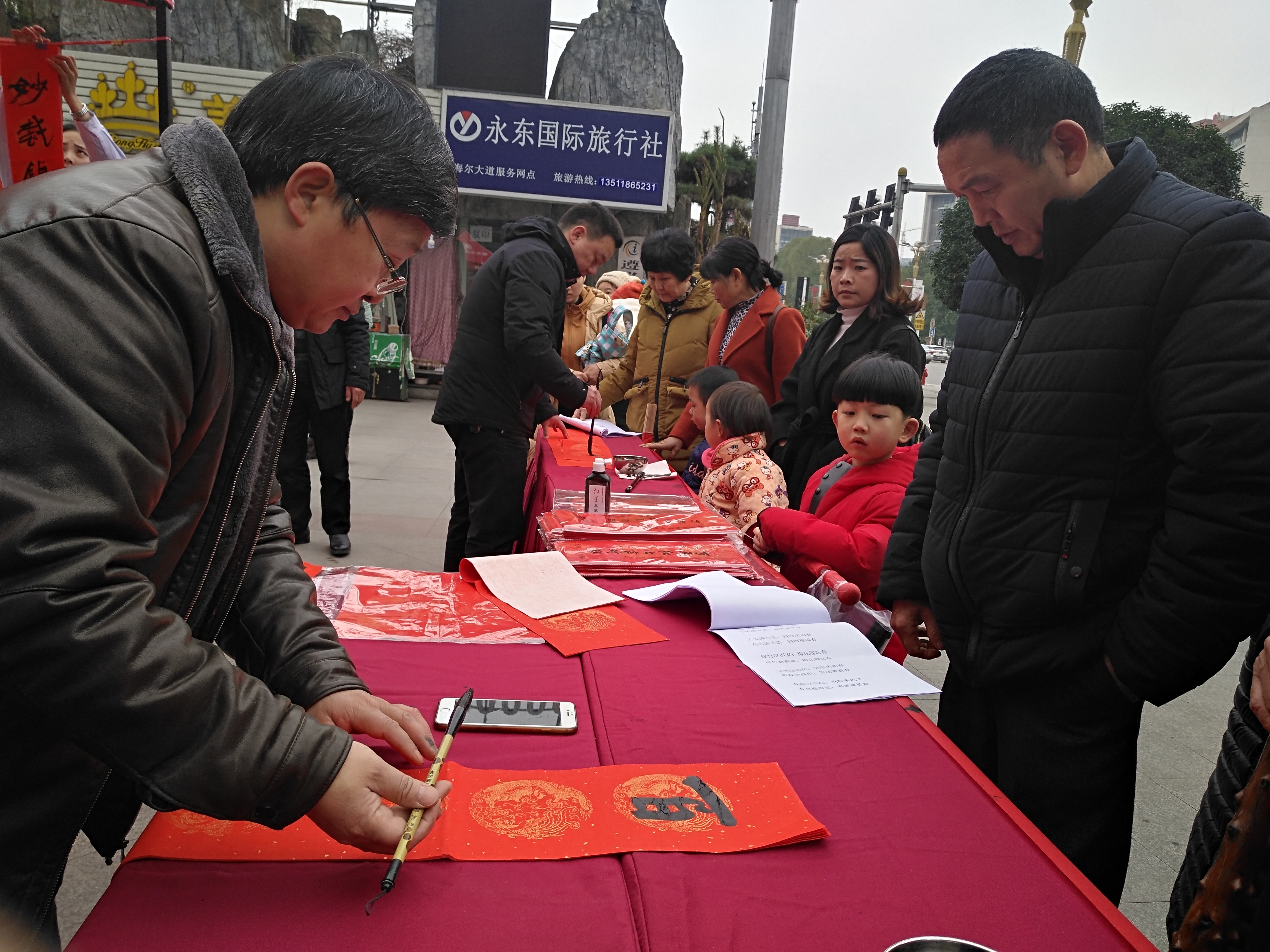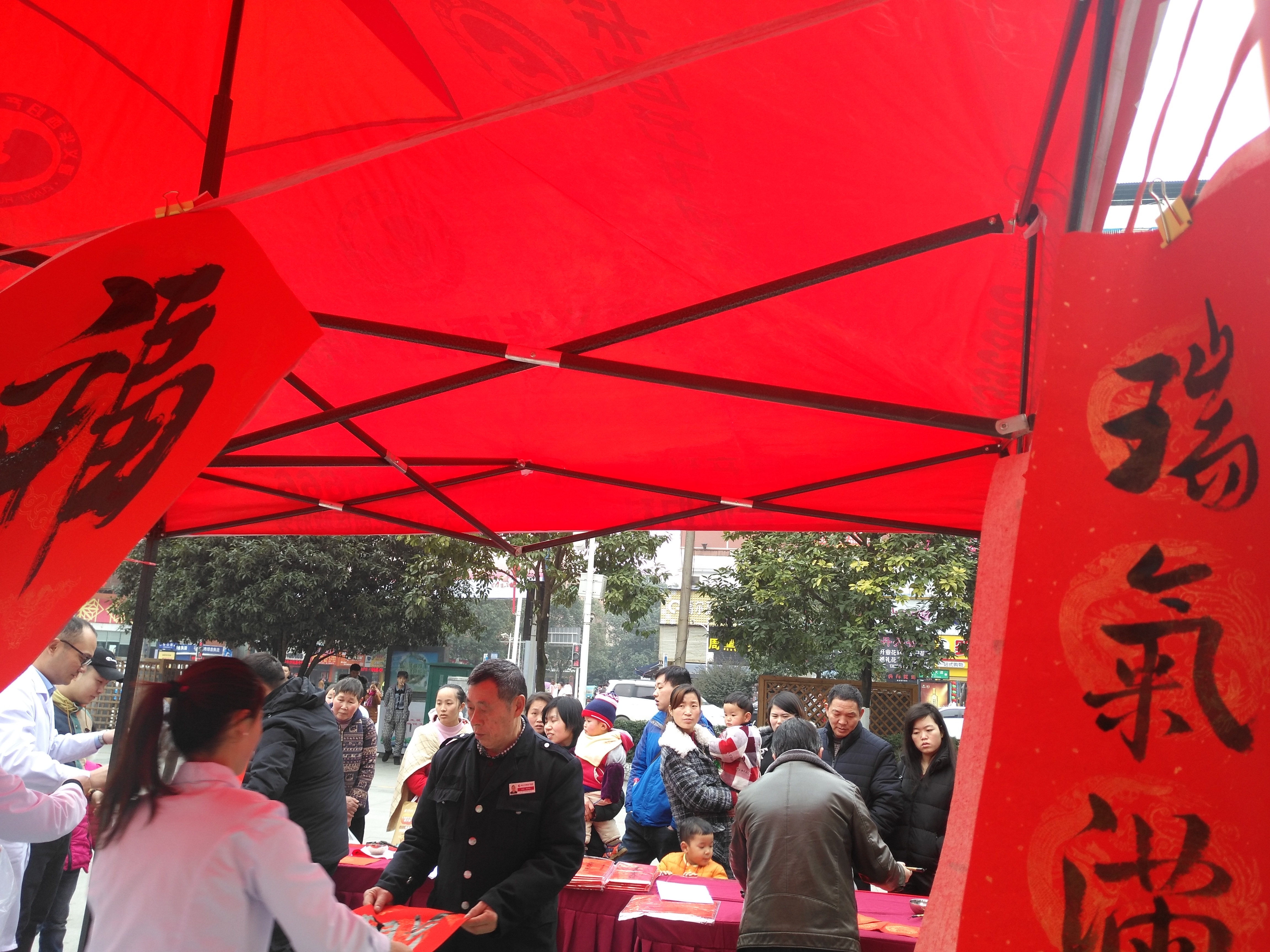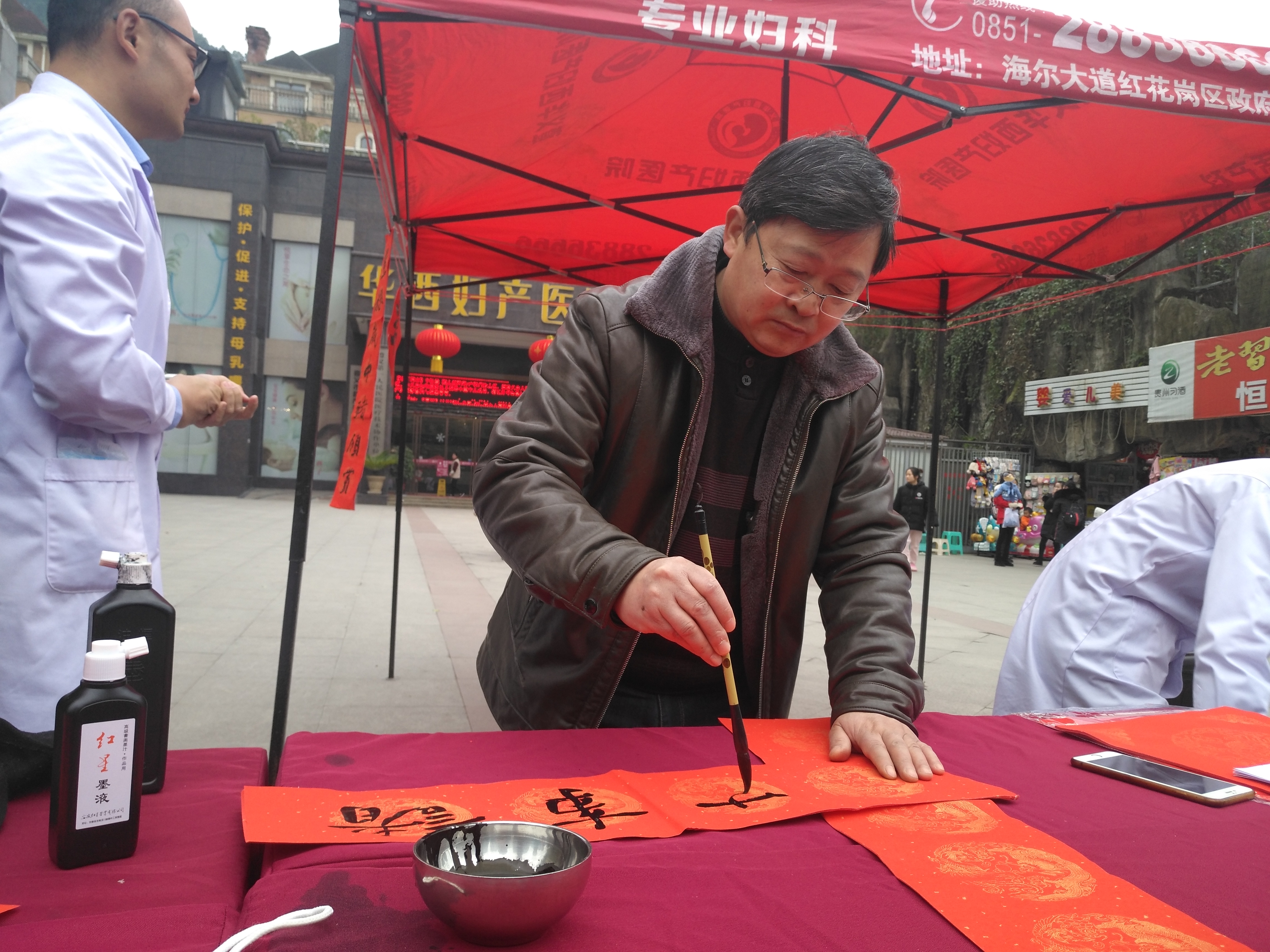 为深入贯彻落实党的十九大精神,以习近平新时代中国特色社会主义思想为指导,扎实推进文化繁荣昌盛,丰富群众精神文化生活,营造良好的节日氛围。1月23日15:00,红花岗区文联、红花岗区书法家协会联合我院开展“书香情·幸福家”送春联活动,组织数名书法家在华西妇产医院大门口为群众写春联,为群众送上2019年的美好新年祝福。